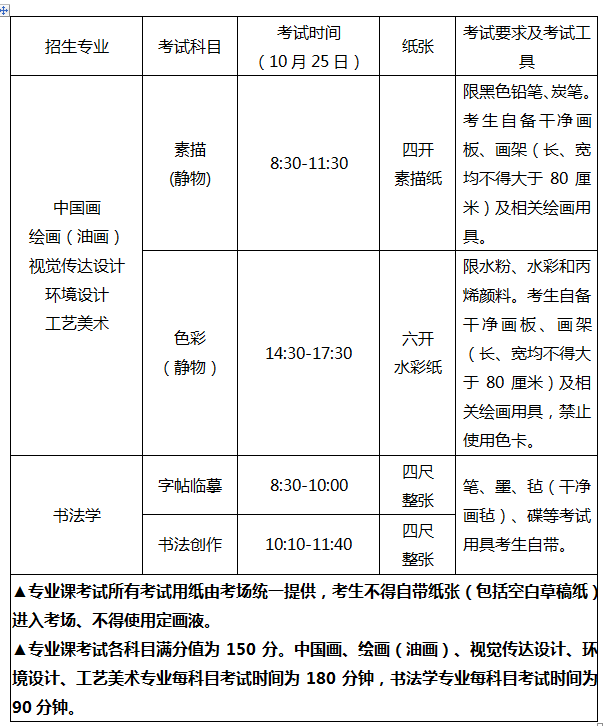 4.所有考试用纸和板凳由考场统一提供,考生不得自带纸张(包括空白草稿纸)进入考场,画板、画架等其他考试用具考生自带。